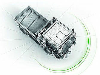 | Fahrerhaus | Space-Frame-Vollkomfortkabine mit hochfesten Spezialprofilen und Kunststoffbeplankung, optional beheizbare Frontscheibe |