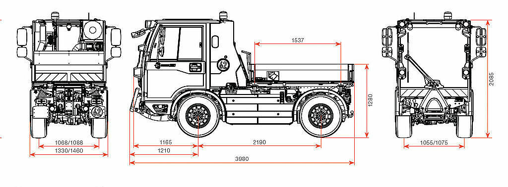 | Leergewicht* | ab 2,85 t (Geräteträger, ausstattungsabhängig) |