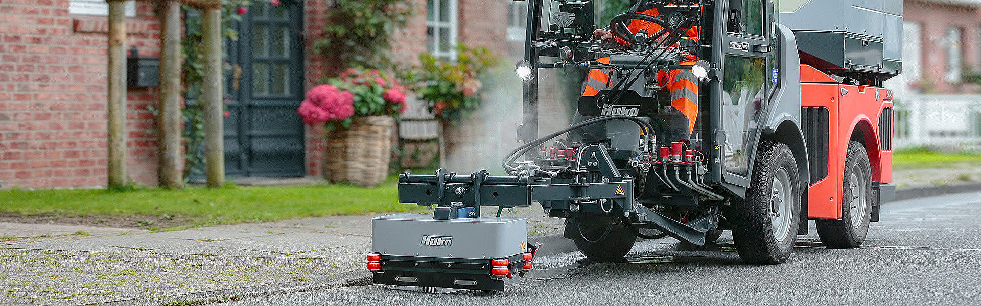 Starkes Team mit Wasserstrahltechnik: Ausgestattet mit dem Wasserstrahlsystem Weco M900 City ist der Citymaster 1650 die ideale Lösung dafür, eine Vielzahl an Aufgaben auf Straßen und Plätzen sowie dank nur 3,5 t Gesamtgewicht auch auf Gehwegen zu erledigen. Und das zeit-, material- und kostensparend: Denn per Knopfdruck kann zwischen den drei Grundfunktionen Hochdruckreinigen, Wildkrautentfernen und Bewässern gewechselt werden – und das im selben Einsatz! Und danach lässt sich der Citymaster 1650 zum Beispiel mit wenigen Handgriffen für den Kehreinsatz umrüsten.